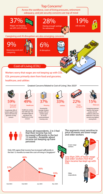 “Cost pressures are not just persistent, they are intensifying across different segments of the workforce,” the report noted. Healthcare costs are a major concern for 71% of workers aged 55 and above, while housing affordability is hitting younger workers hardest, with nearly half of those aged 20 to 34 flagging it as a key issue.