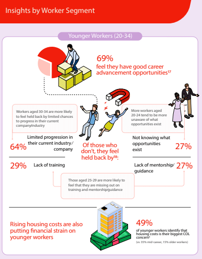 Among younger workers, financial strain is compounded by limited visibility into career pathways and concerns over progression opportunities.